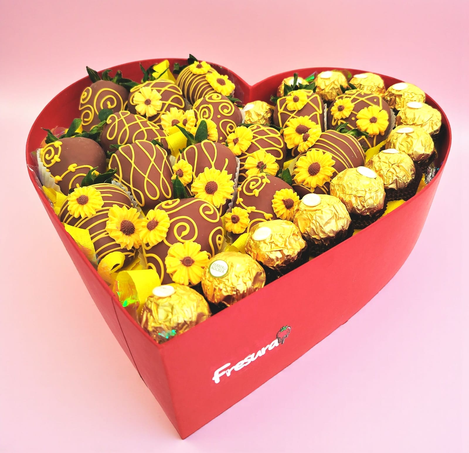 Caja en forma de corazon fresas y ferreros.